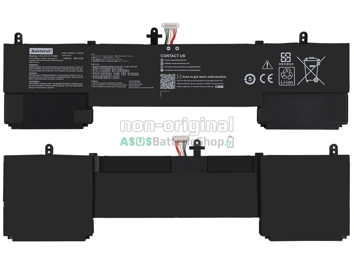 AsusBatterieShop.fr est responsable de ses produits et de chacun de ses clients ! Chaque batterie de remplacement Asus ZenBook 15 UX534FTC est certifiée NF, CE et ISO9001:2015. En même temps, nos utilisons des cellules importées de haute densité de qualité A+, ce qui non seulement améliore grandement le temps d'utilisation, mais les rend également 100% compatibles avec votre ordinateur portable Asus.